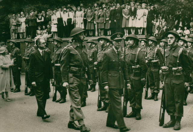 And he sent another – of the visit to TRE by the King and Queen in 1944… Robert says: “I believe this picture was taken during a visit by the King to Malvern during the war. My mother is in the picture, standing right on the corner of the wall. My father was in the RAF and both had been at Worth Maltravers, although they didn’t meet until the relocation to Malvern. My uncle on my mothers side, Wilfred Hill MBE was ex RAF at this time and was part of the team that requisitioned Malvern College. He once said to me “I was still relatively young but I never had so much power before or since then”
